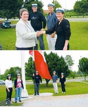 Inspektør Mette Brinch Thomsen ønskede tillykke til de 5 første afgangselever og pedel Mogens Jensen hjalp eleverne med flaghejsningen. Hermed blev en helt ny 20 meter høj flagstang brugt for første gang.