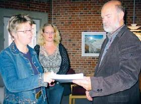 Underskrifterne - dem var der 743 af - blev afleveret til borgmester Torben Jensen (BL) på rådhuset i Grenaa tirsdag formiddag af en Glesborg-delegation bestående af Nina Jelstrup, Karin Riis og Marianne Svit.