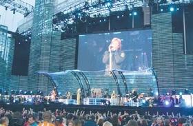 Her ses et foto af scenen, der blev brugt sidste år af Bon Jovi, og som sikkert bliver den samme til sommer. Den kan bedst beskrives, som en 5 etages boligblok! Den bygges op på 4 dage af cirka 200 par hænder, og efter koncerten pakkes det hele ned og bringes videre til næste koncertsted.