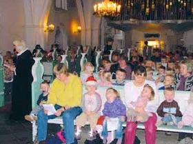 Byens børnehaver og dagplejer kommer i kirken med deres børn, og sammen holder man julesang, hvor organisten leder sangen med børnene, og Lene Højholt fortæller juleevangeliet - med anvendelse af illustrative ting, der kan gøre evangeliet nærværende for de små, og måske også for de store. Kong Herodes og de tre vise mænd er også med.