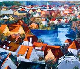 I administrationsbygningen i Allingåbro er ophængt 3 værker også med motiver af byens tage i Silkeborg. Udstillingen kan besøges i åbningstiden.