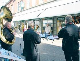 I stedet for at lave en traditionel jubilæums-reception, så besluttede indehaver-parret, at invitere alle - høj som lav til - »sølvbryllups-fest«, hvilket naturligvis inkluderede vaske-ægte sølvbryllups-musik, der blev leveret af Grenaa Blue Brass, da butikken slog dørene op kl. 10.00. En æresport var der naturligvis også sørget for, ligesom Lene, Peter og personalet i dagens anledning var trukket i det helt store fest-skrud. Indenfor var der lidt godt til ganen til de mange, der i dagens løb valgte at kigge forbi for at ønske tillykke med de 25 år i Storegade.