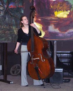 Dyndets Sønner har åbnet sine døre og ved ferniseringen var mangen en mand og kvinde mødt frem for at se, hvad udstillingen kunne byde på - og der var meget: Skulpturer, malerier, vævning, lyrik. mad og musik. Musikken var komponeret og leveret af Signe Gjesing (billedet) og Patricio Moya.