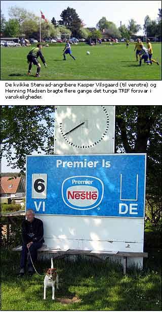 TRIF’s angribere var samtidig bÃ¥de uskarpe og uheldige i deres afslutninger, som da Søren Lauritsen endelig slap udenom den tændte StenvadmÃ¥lmand Martin Høyer, men mÃ¥tte se sit forsøg afværget pÃ¥ mÃ¥lstregen.