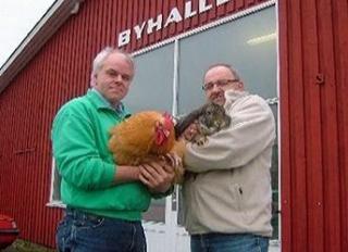 Svend Erik Kjær Laursen, Ebeltoft (tv) og Bent Bamberg Ernstsen, Ryomgård, hører til dem, der deler glæden ved at have hobbydyr i haven. De er begge repræsenteret på weekendens udstilling i Byhallen.