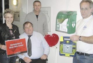 Nu får centret endelig sin hjertestarter, der er sponsoreret af Sparekassen Østjylland.