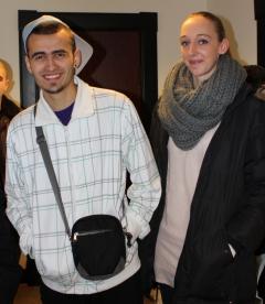 Efter at have siddet pænt og lyttet til hinandens fortællinger fik eleverne fra Grenaa Handelsskole en rundvisning på Røde Kors-skolen. Her er det Armin fra Bosnien, der viser Pernille Møller fra 2. HG rundt. FOTO: Haakon R. Petersen.