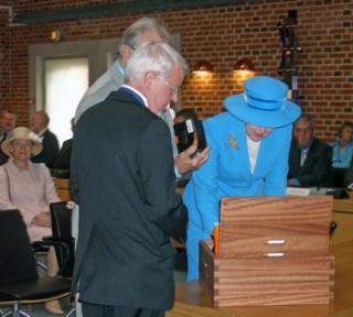 Regentparret studerer deres gave.