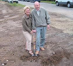 Gravemaskinen havde allerede været igang dagen før og gjorde dermed arbejdet lettere for borgmester Kim Dalgaard Poulsen og boligforeningsformand Annette Press, da de sidste forrige fredag markerede starten på det nye boligbyggeri i Nimtofte med at tage et første spadestik.