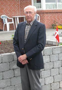 Aksel Andersen foran en af de i alt ti andelsboliger i Dystrupparken, der blev officielt indviet i sidste uge med et kombineret rejse- og færdiggilde. Efter et traktement af sandwiches, øl og vand viste Aksel Andersen interesserede rundt i sin egen andelsbolig.