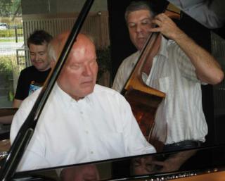 Willy Egmose ved flyglet, Jeppe Smith-Olsen på bas og Kristian Leth på trommer.