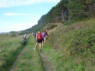 Jævnlige vandreture giver God motion, Socialt samvær, Store naturoplevelser samt Velvære for krop og sjæl. 10000 skridt om dagen kan erstatte de anbefalede 30 min. daglig motion og kan forlænge dit liv med ca. 5 år. Det er gratis at deltage. - På denne vandretur går deltagerne 7-10 km. - Og tempoet er ca. 5 km i timen.