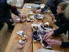 Naturens egne plantefarver er fantastiske og kan bruges til at lave flotte dekorationer på påskeæg. Æggene pakkes ind i forskellige planter, og koges over bål, så der fremkommer spændende mønstre. - Vi binder sjove fugle af halm og garn, og laver reder af pil og naturmaterialer. - Og vi koger et strudseæg og laver Djurslands største æggemad!