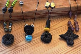 Keramiker Mona Lillelund udstiller keramikperler, som blev lavet af børn og voksne på årets Barda-træf, men som blev efterladt. Nu har Mona Lillelund lavet perlerne færdige og lavet fine smykker ud af dem, som udstilles på Rønde Bibliotek. - Op af Bardas sort muld æltes leret til perler og brændes i bålet med kærlighed og mod til ildperler, personlige ild perler sat sammen med glas perler i alle farver af børn og voksne.