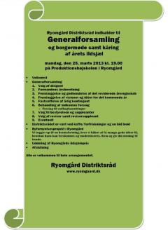 Invitation til Generalforsamling i Ryomgård Distriktsråd.