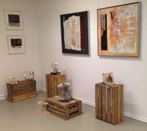 Bente Lyhne udstiller landskabsmalerier og Trine Brix udstiller Bronzeobjekter og installationer.