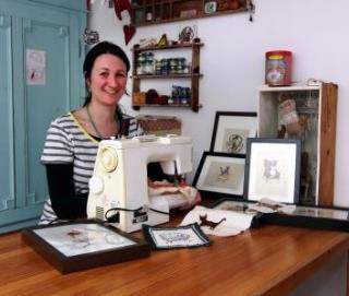 Kom ind og se Amy Hauschilds fantasifulde og finurlige kreationer på Rønde Bibliotek. Amy Hauschild er tekstilkunstner og skaber sine værker af en blanding af patchwork, broderi og maleri. - Hun er oprindeligt fra Nordengland, men har nu base i Knebel med sine mand og 2 børn. Hun skaber brugskunst som bl.a. puder, penalhuse, betræk til stole og bamser.