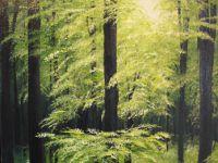 Maleri af bøgeskov af Gitte Toft.