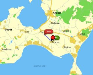 Græsbjegvej mellem nr. 16 og 17 (ca. 500 m nordvest for landsbyen Strands)