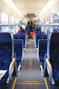 Indeni de nye tog på Grenaabanen.