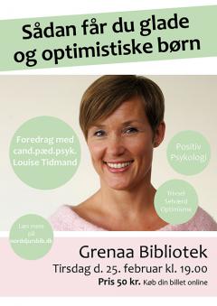 05/05 2023 Hør foredraget "Sådan får du glade og optimistiske børn" på Grenaa Bibliotek tirsdag d. 25/2 kl. 19