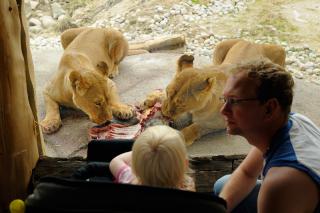 Afrikas største rovdyr fodres hver lørdag. Det foregår i det imponerende løveanlæg Katanga Hill. I det 1 hektar store anlæg vandrer du ad en lang træbro gennem bøgeskoven op til klippeanlægget Kopjen, hvorfra du og løverne har udsigt til savannens mange dyr. Under fodringen fortæller guiden, b.la. om løvernes adfærd, jagtteknik og leveforhold.