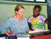 På billedet ses kirkens kantor Betty Arendt sammen med én af de afrikanske musikere.