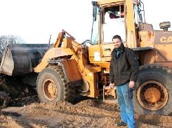 Vesenlund Service v/Rolf Østergaard påtager sig også større anlægsopgaver inden for industri og landbrug. Her er de i gang med at lægge sandpuder til et stort staldbyggeri i Glesborg Kær.