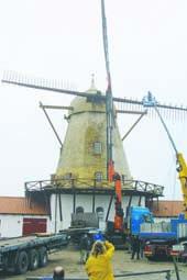 Monteringen gik nemlig ikke helt efter planen, idet vinden drillede en smule, således at det pludselig blev et problem at få det hele til at falde i hak. Arbejdet blev også forsinket derved, at der måtte rekvireres en større og stærkere kran, idet den, der oprindeligt var tiltænkt opgaven, ikke kunne tumle de store møllevinger, der vejer cirka 1100 kilo hver især. Men på plads kom møllevingerne, og nu begynder den nye Baunhøj Mølle for alvor at træde i karakter. De sidste arbejder på genopførelsen af Baunhøj Mølle kan forventes gennemført frem til fredag den 13. maj, hvor den nye Baunhøj Mølle skal indvies - og blandt ved, at møllevingerne skal dreje rundt. En stor dag for de mange, mange Grenaa-borgere, der har savnet en mølle på toppen af Baunhøj lige siden den gamle brændte ned til grunden den 2. maj 2002. Tre år og 11 dage senere knejser der påny en massiv mølle på byens højeste punkt!!