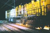 I denne uge slibes der løs på skinnerne på Grenaabanen, men kun om natten. Her ses det tog, der klarer arbejdet.