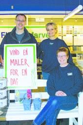 Vinderne af en maler for en dag blev Jens Chr. Rasmussen, Åstrupskrænten 20 i Grenaa, og han ses her på billedet sammen med Dorte Madsen og Irene Andersen fra Flügger Farver i Grenaa.