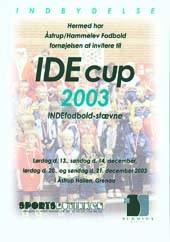 I weekenderne den 13.-14. december og 20.-21. december er Åstrup-Hallen i Åstrup ved Grenaa beslaglagt til en årligt tilbagevende begivenhed - nemlig indefodboldstævnet for ungdomsspillere IDE Cup, der påny har Sportsbutikken ved Henning Greve og Schmidt Møbler ved Jens-Ove Schmidt som hovedsponsorer.