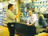 således lyder et Open by Night-tilbud fra Sonofon-butikken i Grenaa. På billedet demonstrerer Martin Highland Nielsen og Tobias Thaastrup-Leth den indledende fase af teknikken bag dette tilbud.