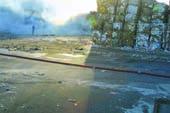 Branden var nemlig på det nærmeste umulig at slukke, og papdyngerne blev da også ved at ulme og brænde de følgende par dage. Dog uden at dette udgjorde nogen fare for hverken bygninger eller mennesker i nærheden af branden. Branden opstod i 3000 baller med sammenpresset pap på en åben plads ved Djursgade i Grenaa. Og ilden havde som det fremgår af billedet rigtig godt fat i de i alt cirka 1500 ton genbrugspap/papir. Branden udviklede også meget røg, hvilket rigtig mange beboere i området selvsagt var kraftigt generet af. Derudover dryssede det med brændte papir-flager over et stort område af Grenaa som følge af branden. Årsagen til branden havde man ikke helt styr på ved redaktionens slutning.