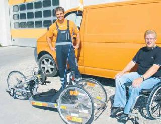Den bedste hånd-racercykel på markedet koster imidlertid 32.000 kroner, og hvad gør man, når man ikke lige har en sådan sum penge på rede hånd. Man ringer rundt til en række lokale firmaer for at høre, om ikke de kunne tænke sig at være med til at sponsorere en sådan cykel. Og tilpas mange firmaer var med på idéen, så nu kan Jens Holst køre løb på en hånd-cykel, der er udviklet af selveste verdensmesteren i disciplinen. Halvdelen af de 32.000 kroner er sponsoreret af indehaveren af Djurslands Kloak-Service i Trustrup, Ulrik Sinding. På billedet ser man både Ulrik Sinding, Jens Holst og den flotte cykel, der er købt igennem Århus-firmaet G2, der sælger sportshjælpemidler af højeste kvalitet.