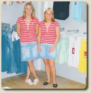 Mio Mondo ligger på 1. sal - ovenpå Ny Forms velassorterede sportsafdeling. Mio Mondo boltrer sig på cirka 200 m2 og er spækket med nyheder fra Vero Moda, ONLY og Pieces. Det være sig alt lige fra jeans og nederdele til toppe og bælter og andre assecories. Blandt meget andet. Pia Christensen, bestyrer af Ny Form ved Bønnerup Strand, understreger, at der ikke er tale om rest-partier, kopivarer eller noget andet i den stil, men derimod de seneste nyheder fra firmaet Bestseller, som producerer Vero Moda og ONLY. Der kommer således nye varer til Mio Mondo hver uge. Med den nye afdeling er butiksarealet i Ny Form nu sammmenlagt på godt 420 m2. På billedet ses Pia Christensen sammen med Nanna Hougaard i den nye afdeling, der blev indviet med et aftensalg i lørdags.