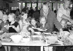 Normalt foregår det hele udendørs - lige fra fællesspisning til blandt andet dyst mellem forældre og børn i rundbold, men på grund af vejret måtte man denne gang rykke indendørs.