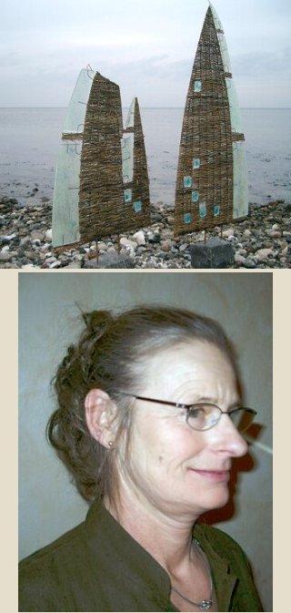 [billede øverst] Skulpturelt pileflet af Solveig Stampe Langballe. [billede nederst] Pilefletter Solveig Stampe Langballe, Ryomgård.