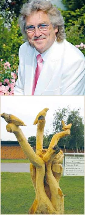 [billede øverst] Dansktop-sangeren Richard Ragnvald har lovet at kigge forbi, idet Fuglsanggården runder de 40 år torsdag den 30. august. [billede nederst] Denne træskulptur af Søren Brynjolf er lavet i anledning af Fuglsanggårdens 40 års jubilæum den 30. august. Der bliver tale om en dag med taler, brunch, blæsere og andre jubilæumsfestligheder.