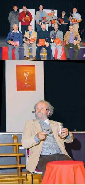 På øverste billede ses de 10 donorer, der er tappet 75 gange. Alle har fået en Provenceskål med bloddråbesymbol. Nederst fra venstre: Anker Hansen, Niels Jørgen Hansen, Kristian Ingolf Olsen, Aage Ejnar Rasmussen og Ivan Nielsen. Øverst: Bloddonorernes formand, Jørn Madsen, Orla Hansen, John Callesen, Dorthe Bønløkke, Karen Hansen og Bent Pedersen.