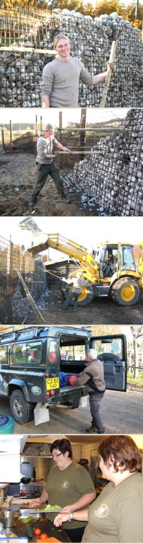 [øverst] Dyrepasser Carsten Laigaard Jensen knokler med at bygge en booma til sjældne asiatiske vildæsler. [midten] Teambuildingleder Morten Kjær skal pakke grej til mange arrangementer i november [nederst] Randerspigerne Pia Jensen og Sisse Asmussen har travlt i køkkenet med forplejning af gæster og julefrokoster