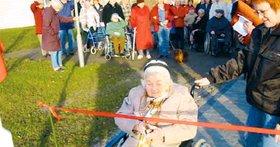 Plejehjemmet søgte om et max. beløb på 80.000 kroner. Socialministeriet ville dog ikke spendere mere end kr. 53.600 kroner, hvilket har dækket cirka 50% af den samlede anlægsudgift. Det resterende beløb er hentet via en opsparing på driften fra 2006. Det har været et stort ønske i mange år fra beboere, personale og pårørende at få en flisebelagt sti, så man kan færdes med kørestol og rollator, og dermed få glæde af haven. Og nu er dette ønske altså opfyldt. Som det fremgår af billedet var det en af beboerne på Nørrevang, der klippede den røde snor over, da haveprojektet blev indviet.