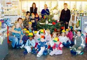 Det gjorde de rigtig godt, og belønningen udeblev ikke: Julemanden havde nemlig været på besøg, og lagt godteposer til alle børnene. Der var med andre ord tale om en rigtig hyggelig formiddag, hvor der blev sunget julesange og danset om juletræet - ja, sågar rundt i hele butikken med »Nu er det jul igen...« osv. osv.