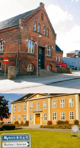 [øverst] De to store flyttedage til den nye lokalitet på Østerbrogade i Grenaa bliver torsdag 17. og fredag 18. januar, hvor de sidste møbler og papirer m.m. skal bringes til det nye sæde for rettens afdelingskontor på Djursland. [nederst] Efter 27 år i Domhuset på Nytorv flytter Retten i Grenaa snart til nyindrettede lokaler i ejendommen Østerbrogade 20 i Grenaa.