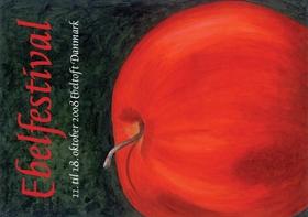 Et kæmpestort, rødt æble på mørkegrøn baggrund. Årets æblemotiv er smukt, enkelt og markant og signalerer helt umisforståeligt ÆBLE. Kunstneren er Eva Lerche, Knebel, og motivet vandt Ebeltoft Kunstforenings konkurrence om årets æblemotiv 2008.