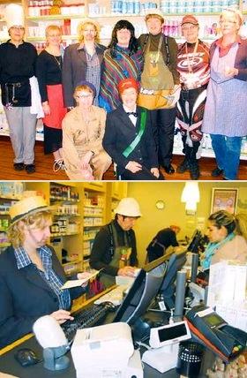 Men det var ikke kun børnene, der fandt fastelavns-kostumerne frem denne mandag den 4. februar 2008. Medarbejderne på Grenaa Apotek i Kannikegade har nemlig gjort det til en tradition, at apoteks-arbejdstøjet denne ene dag om året bliver hjemme i klædeskabet. I stedet møder man udklædt op til dagens dont, og det siger næsten sig selv, at det er noget, der kalder smilene frem hos både medarbejdere og kunder.