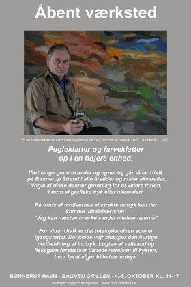 Iført lange gummistøvler og egnet tøj går Vidar Utvik på Bønnerup Strand i alle årstider og maler akvareller. Nogle af disse danner grundlag for et videre forløb, i form af grafiske tryk eller oliemaleri. På trods af motivernes abstrakte udtryk kan der komme udtalelser som: "Jeg kan næsten mærke sandet mellem tæerne"