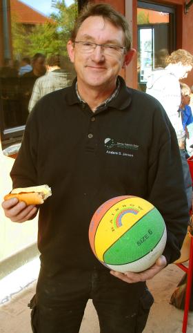 Det nye basketnet blev straks taget i brug.