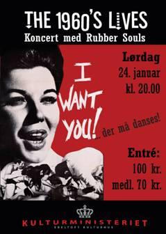 PÃ¥ lørdag er der altsÃ¥ dømt 1960’er rock n’ roll i Kulturministeriet. Rubber Souls er navnet pÃ¥ et orkester, der lever sig tilbage i tiden til dengang hvor musikken bliv købt pÃ¥ vinylplader og hørt pÃ¥ værelser med orange lamper, røgelsespinde og patchwork. Navnet er inspireret fra den legendariske Beatles LP, og repertoiret er hentet fra tidens orkestre: Beatles, Beach Boys, Elvis Presley, Steve Miller Band, Mamas and Papas. Kulturminister Kristian Krog melder allerede nu om mange reservationer: ”Det der med nostalgi, rock & rul er Ã¥benbart noget der rammer i folkets smag. Retro er jo in, sÃ¥ vi hopper bare med pÃ¥ bølgen Kulturministeriet”.