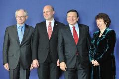 Herman Van Rompuy, Sveriges statsminister Fredrik Reinfeldt, Kommissionens formand José Manuel Barroso og Catherine Ashton